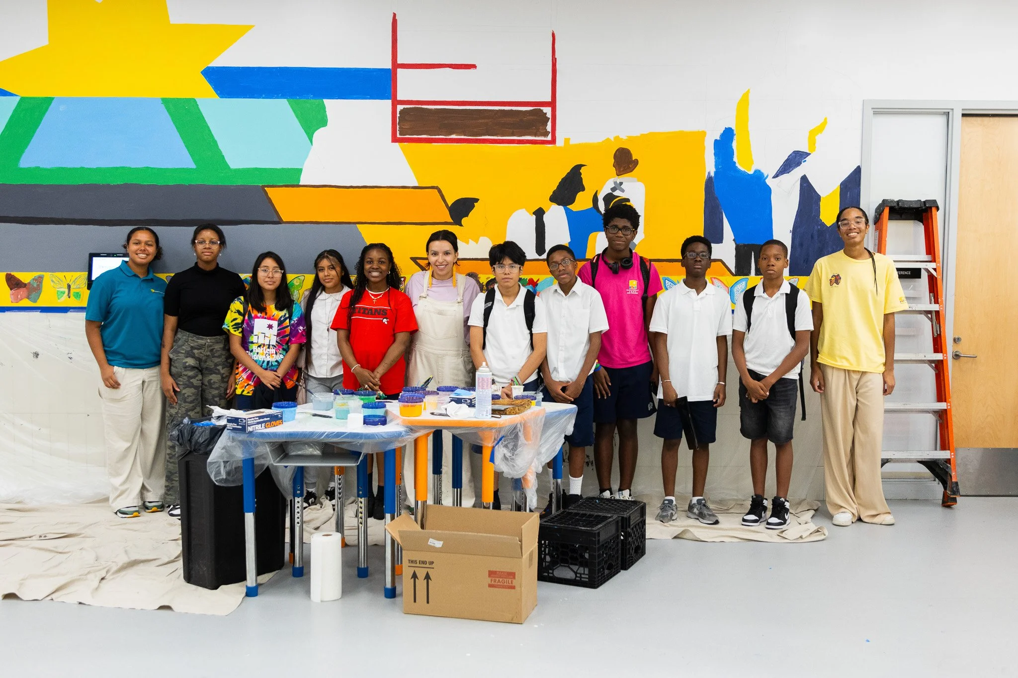 Elementary, middle, and high school students come together to paint the OUR PLACE with Solena in East Harlem.